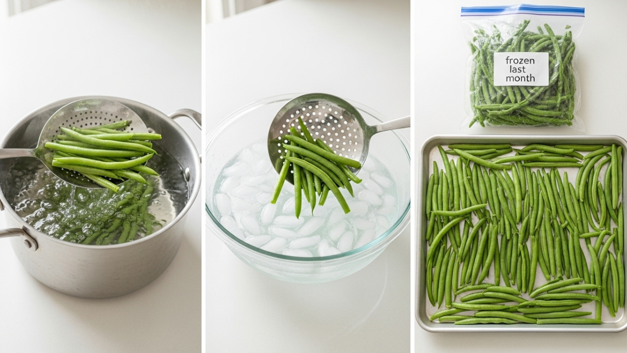 Have you ever bought a bag of frozen green beans from the store and thought they tasted better than the ones you made yourself? Well, there’s a reason for that. In commercial freezing, producers blanch vegetables, which means they briefly boil and then immediately plunge it into ice water. That process locks in color and flavor and helps minimize damage to texture. It obliterates enzymes that would otherwise spoil the food.