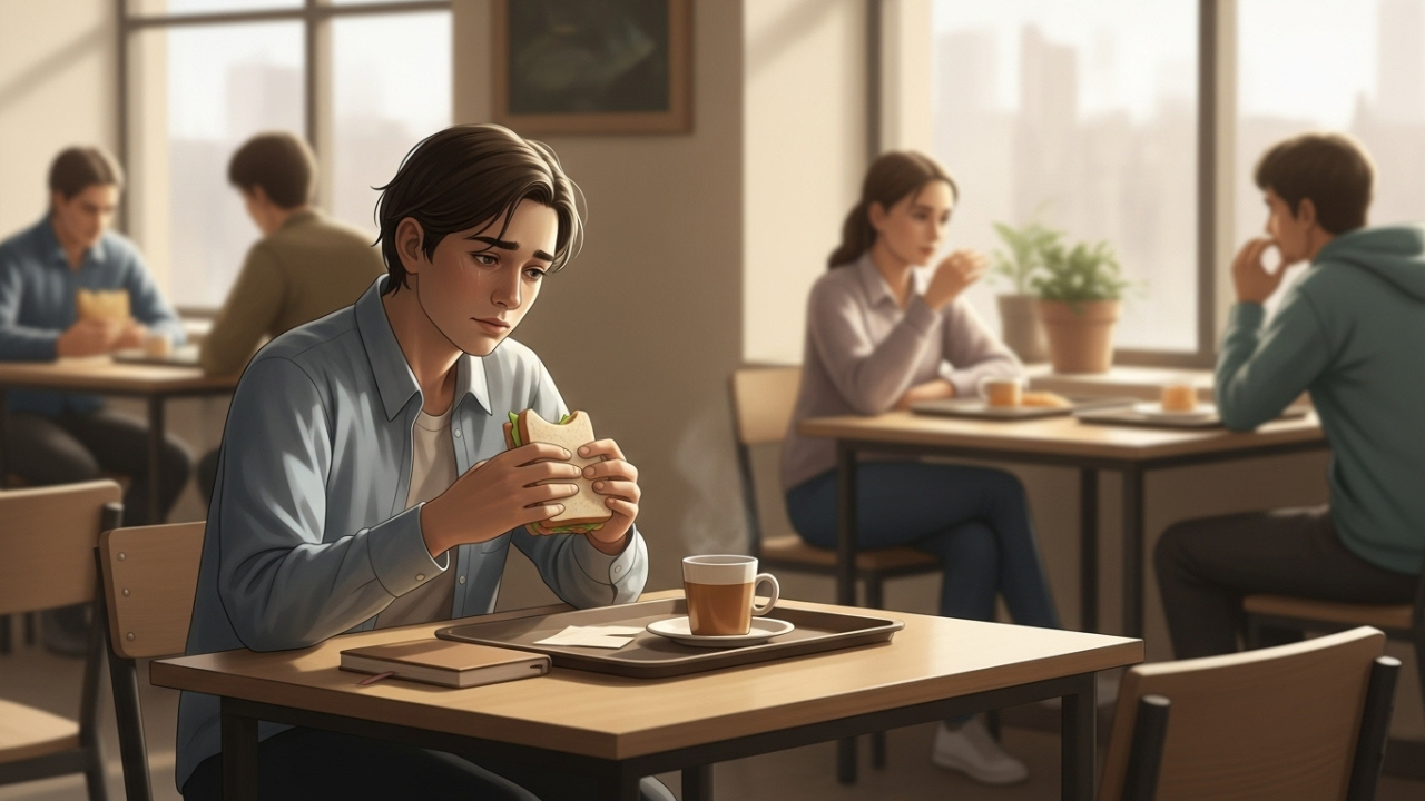 You wait in line, balancing a sandwich on a tray, with perhaps a drink and a small snack to maintain balance. But the weight feels overwhelming. It isn’t the food; it’s the burden of pressure. Your gaze rapidly moves around the room, looking for a table, a person, and then an escape. The reason food is provided is not that important. What you truly want is to vanish from existence.